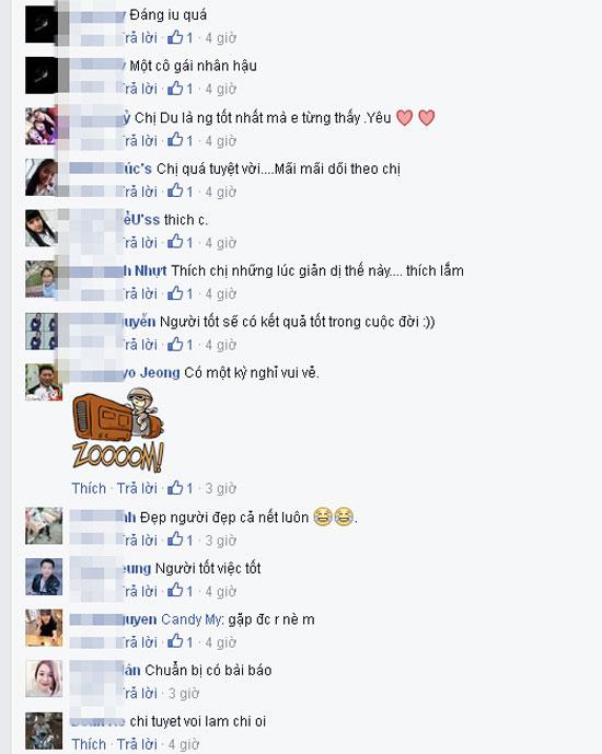 Hành động này của Midu nhận được nhiều lời khen ngợi: "Sống trong đời sống cần có một tấm lòng. Nhìn Du ngồi xuống đất, lau chà nền nhà không phân biệt hèn sang thấy cảm động quá. Không phải chỉ bỏ tiền, mà cả bỏ công sức. Cần lắm những tấm lòng như thế.