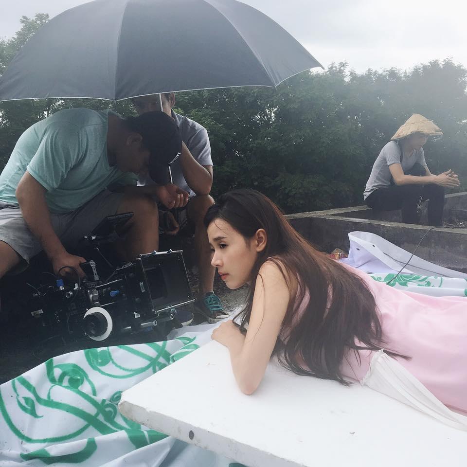 Hình ảnh Midu chăm chỉ làm việc khi ở phim trường.