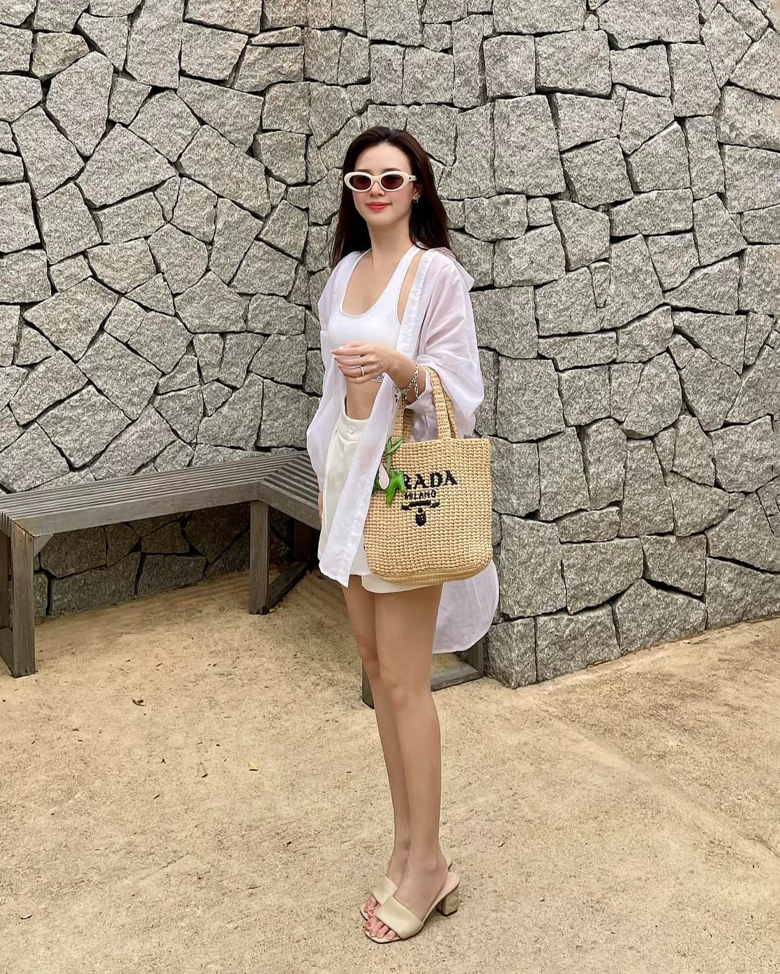 Đáng nói, chiếc túi kiểu dáng tote đơn giản với logo Prada Milano in nổi bật có vẻ "được lòng" Midu cực kì. Netizen nhiều lần bắt gặp Midu trưng dụng chiếc túi này khắp nơi như đi dạo biển Nha Trang, lên máy bay, mua sắm tại TP.HCM…