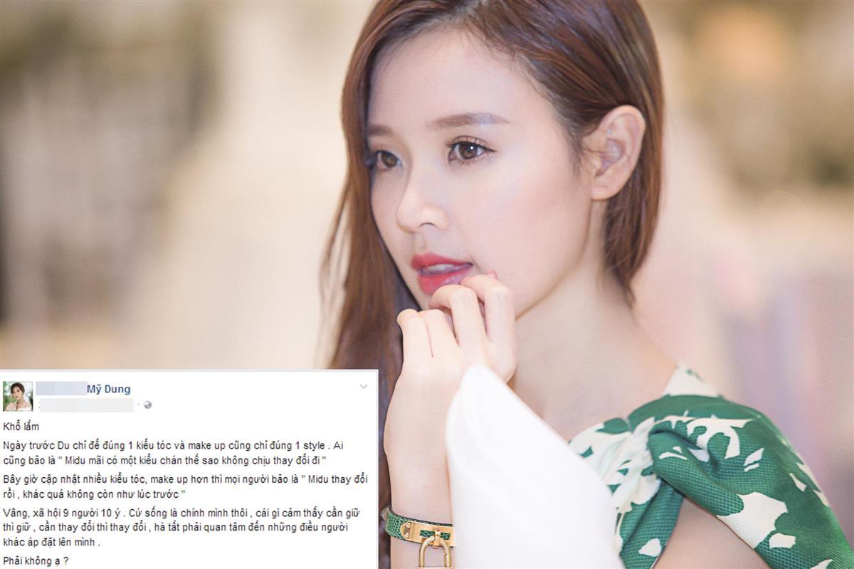 Theo Midu, ngày xưa chỉ make up và để một kiểu tóc thì bị chê nhàm chán, nhưng bậy giờ cập nhật nhiều xu hướng lại bị chỉ trích là thay đổi khác xưa. "Khổ lắm, ngày trước Du chỉ để đúng một kiểu tóc và make up chỉ đúng một style. Ai cũng bảo: Midu mãi có một kiểu chán thế sao không chịu thay đổi đi. Bây giờ cập nhật nhiều kiểu tóc, make up hơn thì mọi người bảo là: Midu thay đổi rồi , khác quá không còn như lúc trước", Midu than thở.