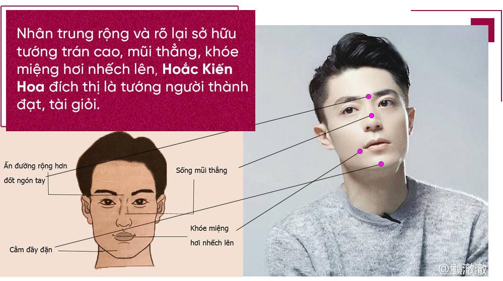 Nhiều nhà nhân tướng từng nói: Phu thê không nhất thiết phải giống nhau, chỉ cần khi đi bên nhau trông họ có nét gì đó hấp dẫn không thể tách rời. Mặc cho dân tình phân tích, bình luận sự lạnh lùng của nam tài tử đối lập với vẻ năng động, hoạt bát của Hoắc phu nhân thì chung quy lại, họ vẫn mang những nét bù trừ cho nhau khá tốt. Nếu Hoắc Kiến Hoa là gai góc thì sự đầy đặn, mềm mại trên khuôn mặt Lâm Tâm Như sẽ khéo léo lấp đầy. Hoắc Kiến Hoa sở hữu mũi hình kim tự tháp, trán bằng rộng, lông mày rậm, đỉnh tam giác nhô cao, đuôi mắt hơi rủ xuống là sự kết hợp nhân tướng của nam giới mạnh mẽ và thành đạt. Khuôn mặt nam tài tử có nhân trung rộng và rõ, so với nam giới môi khá mỏng. Trùng hợp rằng điểm này khiến khuôn miệng anh khi cười khá giống với đôi môi của Lâm Tâm Như. Điệu cười lệch sang một bên cũng thể hiện đấng nam nghi này khá ngang tàng, quyết đoán, một khi quyết tâm thì dù lấp bể dời non cũng không dễ dàng suy chuyển. Tai rộng, thùy tai dày thể hiện Hoắc Kiến Hoa là người có khả năng kiếm tiền. Mẫu người này dễ được trọng vọng, tuy nhiên cũng khá khó tính với các mối quan hệ xã hội. |