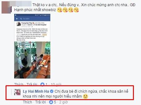 Theo bà xã Lý Hải, vợ chồng cô cùng đưa con đi chích ngừa, tuy nhiên do khoa sản kế bên khoa nhi nên bức ảnh này đã khiến mọi người hiểu nhầm. "Chị đưa bé đi chích ngừa, chắc khoa sản kế khoa nhi nên mọi người hiểu lầm", Minh Hà khẳng định.