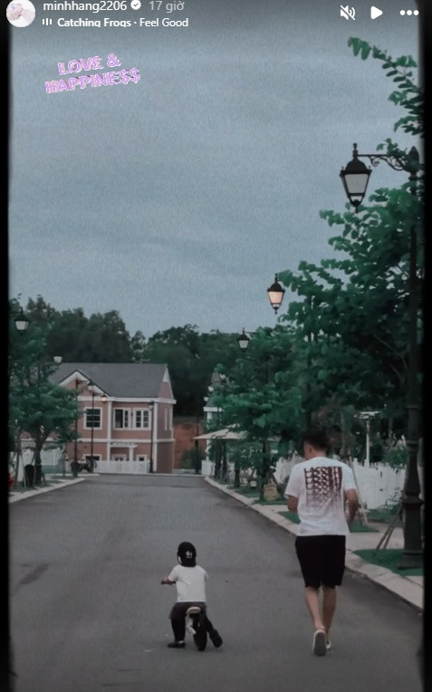 Cụ thể, doanh nhân Nguyễn Quốc Bảo cùng con trai - bé Mỡ cùng hoạt động thể thao ngoài trời. Trong khi nhóc tỳ đi xe chòi chân thì ba chạy bộ cạnh bên. Ông xã đại gia của Minh Hằng dù bận bịu công việc nhưng vẫn luôn dành thời gian để chơi cùng con. Khung cảnh giản dị, bình thường nhưng cho thấy được cuộc sống cùng tổ ấm viên mãn của "bé heo" Minh Hằng.