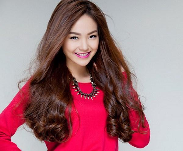 Minh Hằng nữ tính với mái tóc thẳng dài.