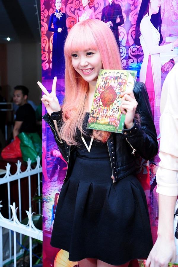 Cô nàng "đổi gió" sang gam tóc hồng như sao Kpop.