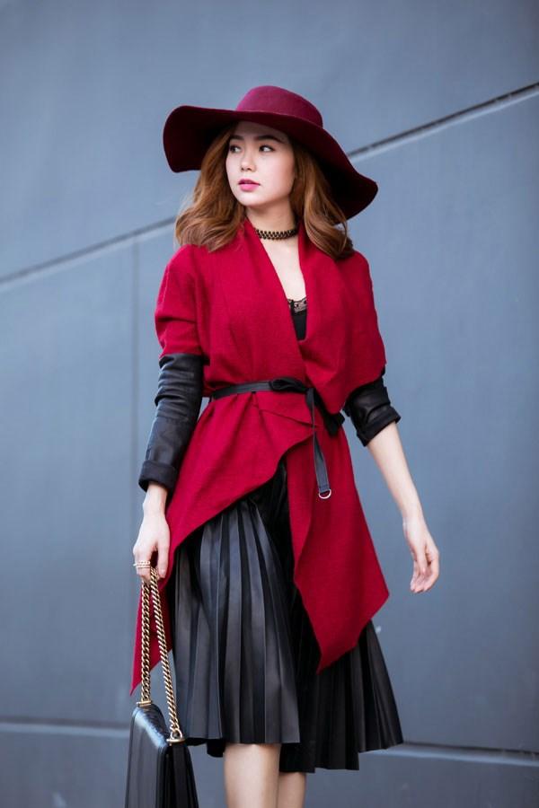 Tóc uốn vểnh kết hợp set đồ dạo phố sành điệu tạo nên hình ảnh tiểu thư cá tính.