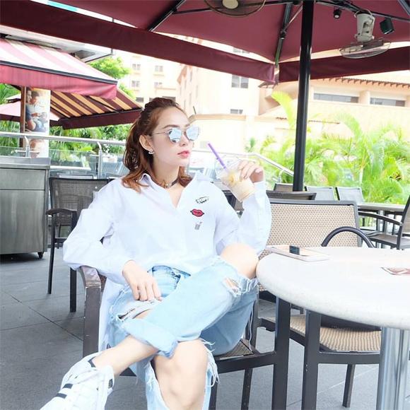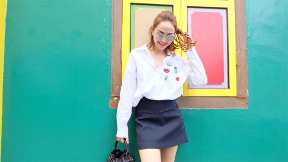 Với cùng một chiếc áo sơ mi Zaza, Minh Hằng có nhiều kiểu kết hợp khác nhau.