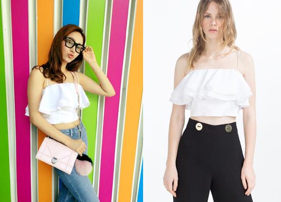 Thời gian gần đây, Minh Hằng khoe với công chúng loạt street style xinh tươi và dễ thương. Dễ nhận thấy, một số item cô mặc trên người đều có giá trị rất mềm của thương hiệu Zaza. Bạn chỉ cần bỏ ra khoảng 600 đến 800 nghìn đồng, bạn sẽ sở hữu ngay một món đồ tương tự nữ ca sĩ.