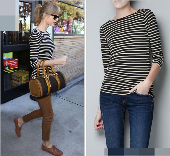 Nếu như Vbiz có Minh Hằng thì trong giới Hollywood, "công chúa nhạc đồng quê" Taylor Swift cũng thể hiện biệt tài sử dụng hàng hiệu bình dân có tiếng. Một số món đồ nữ ca sĩ diện ra đường có giá trị vài trăm nghìn đồng nhưng lại thường xuyên gây sốt với giới trẻ toàn thế giới.