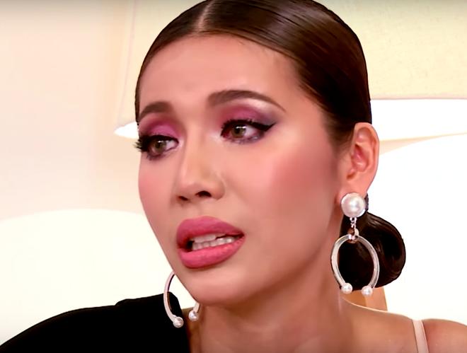 Thường, trang điểm chỉ nhấn vào mắt hoặc môi. Riêng diện mạo trong tập 6 của Minh Tú lại tô điểm cả hai yếu tố này "quằn quại" ngang nhau.