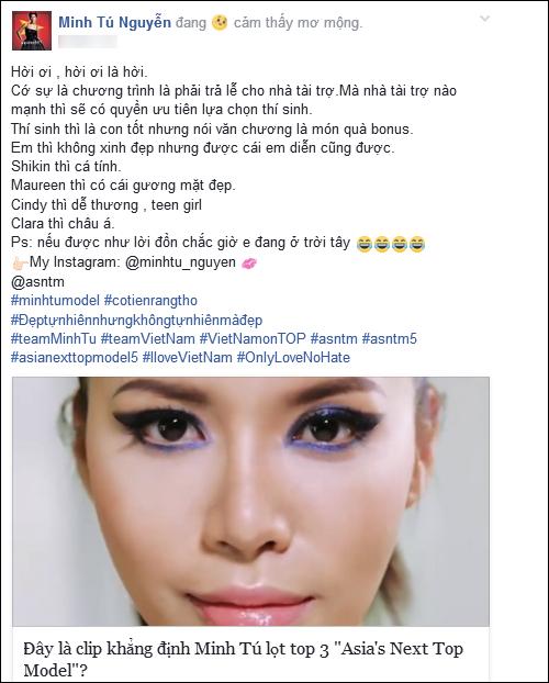Minh Tú lên tiếng về tin đồn lọt top 3 Asia's Next Top Model 2017.
