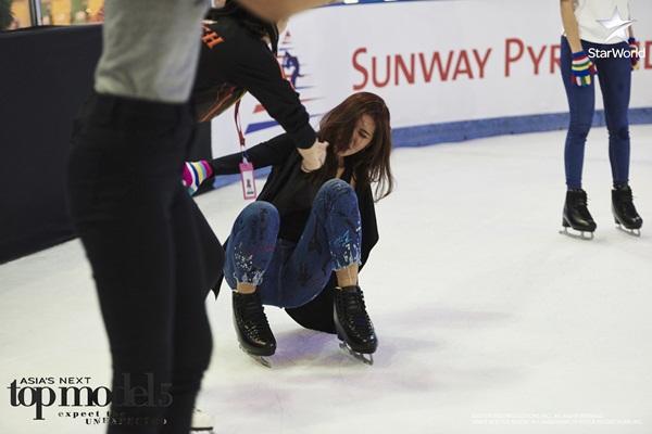 Minh Tú hoang mang với thử thách chụp hình với giày trượt băng.