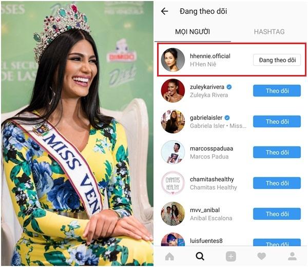 Đại diện Venezuela tại Miss Universe 2018 - Sthefany Gutiérrez - bấm nút "theo dõi" H'Hen Niê.