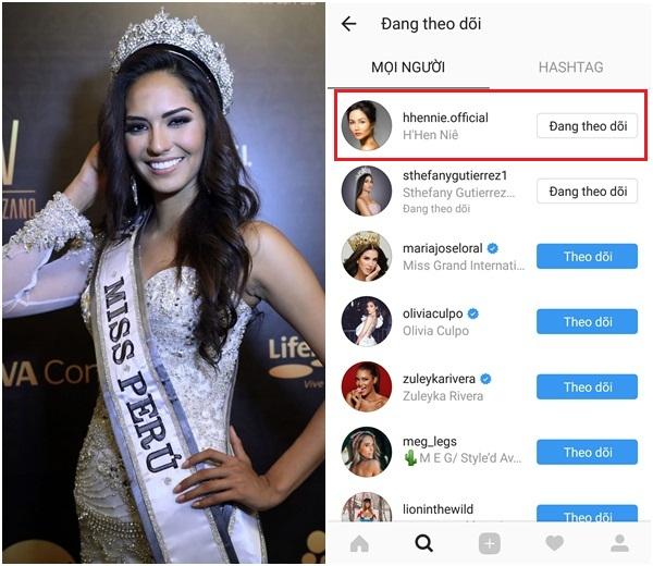 Đại diện Peru - Romina Lozano cũng theo dõi H'Hen Niê trên mạng xã hội.