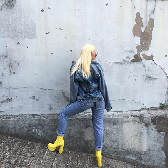 Để khiến mình khác biệt, cô nàng mix đôi boots vàng chanh có phần đế cao