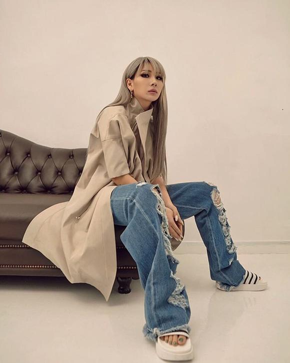 ngầu. Chiếc quần ống rộng rách gối, một xu hướng đã quá lâu, nay được CL khéo