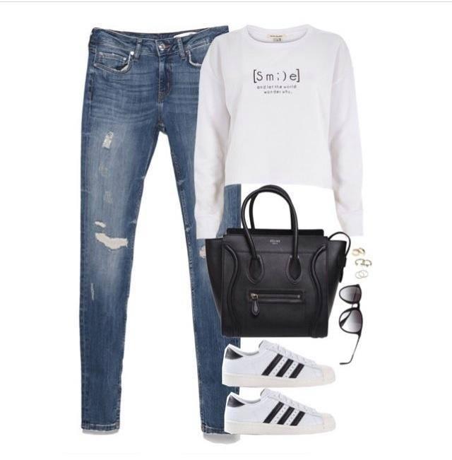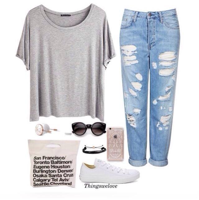 3. Quần jean rách cá tính cùng áo phông , áo thun cổ tròn , vẫn là giầy thể thao converse , giầy slip-on, hoặc adidas classic huyền thoại, như thể đây là một bộ ba hoàn hảo không thể tách rời. Cùng với phụ kiện kính và túi xách céline, hoặc có thể khoác ngoài một chiếc sơ mi kẻ caro làm cho set đồ đỡ nhàm chán, bạn có thể tự tin diện những set đồ này cả đi làm lẫn đi chơi rồi.