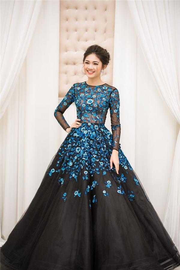 Á hậu Thanh Tú cũng từng xuất hiện vô cùng lộng lẫy và duyên dáng trong bộ váy hoa lộng lẫy này.