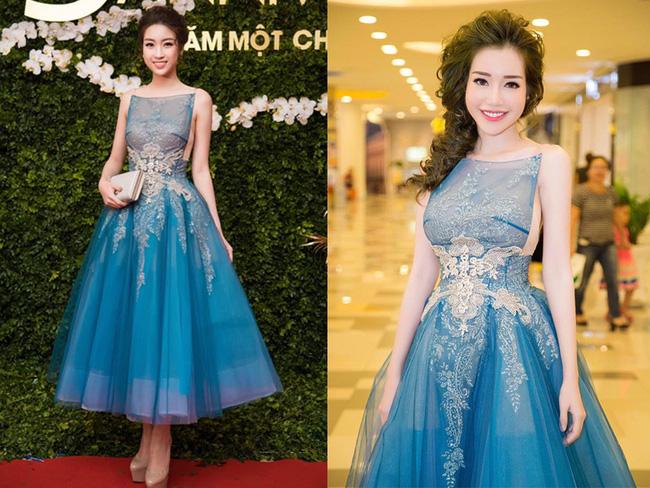 Cùng một thiết kế váy, Elly Trần nổi bật vòng 1 nóng bỏng thì nàng Hoa hậu của chúng ta lại lại tạo