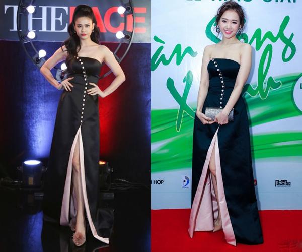 Hương Giang Idol đã "đụng" Thúy Vi trong chiếc đầm trễ nải của NTK Đỗ Long. Thúy Vi sử dụng