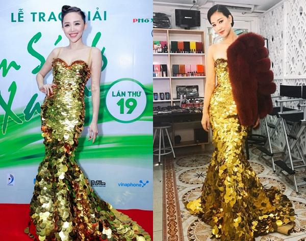 Tiếp tục là một thiết kế của NTK Lê Thanh Hòa được các người đẹp Vbiz đặc biệt yêu thích.