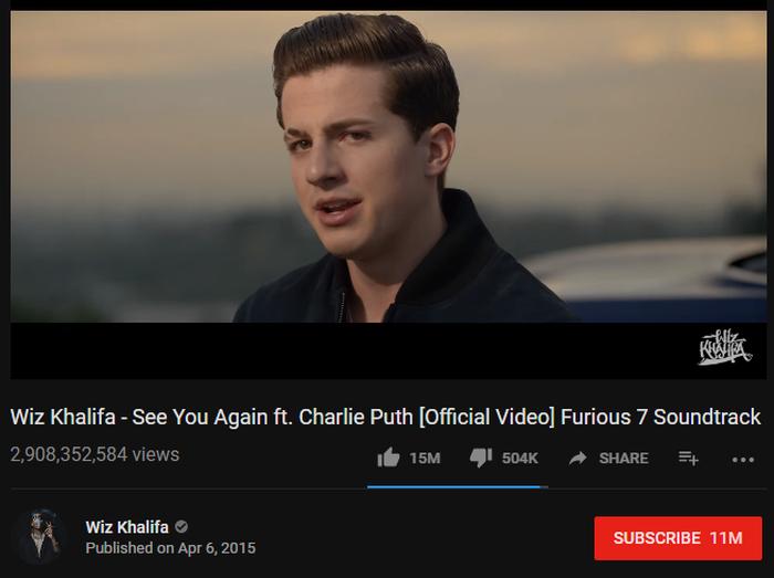 Với 2,9 tỷ lượt xem (tính đến 13/7), See You Again hiện đang vượt Gangnam Style khoảng 10 triệu lượt xem.