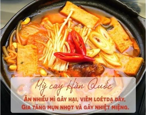 Gần đây trào lưu thách thức ăn mỳ cay Hàn Quốc nhiều cấp độ đang được các bạn trẻ rất ưa thích và đưa ra thách đố nhau. Tuy nhiên, chúng có thể chính là nguyên nhân khiến bạn gặp những vấn đề nghiêm trọng như: viêm dạ dày, loét dạ dày,…. Thường xuyên ăn mỳ cay còn làm mụn bùng phát hay tình trạng nhiệt miệng gia tăng rất khó chịu.