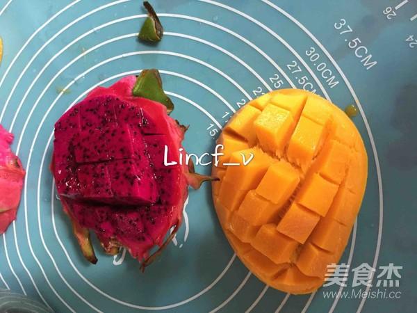Bước 1: Cắt thanh long và xoài chín dạng hạt lựu