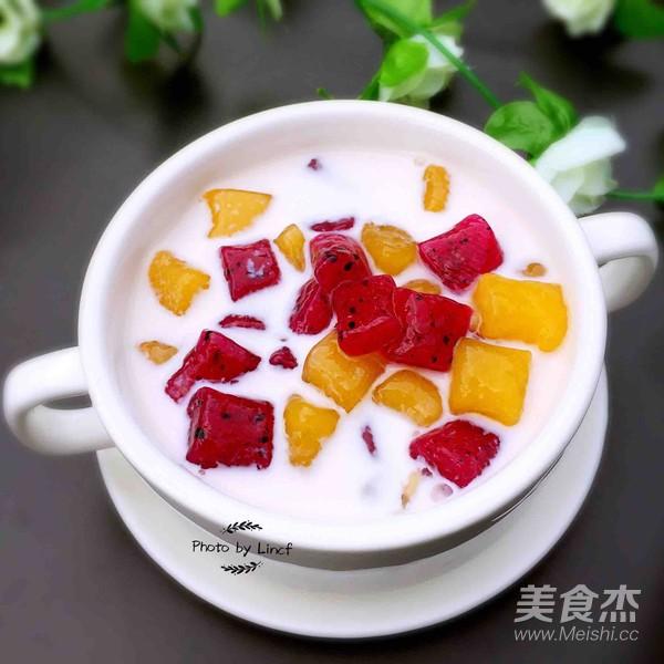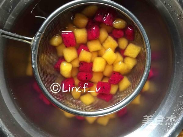 Bước 6: Cho nước vào nồi đun sôi, khi nước sôi, thả thanh long và xoài vào, đun cho đến khi xoài và thanh long nổi là được.