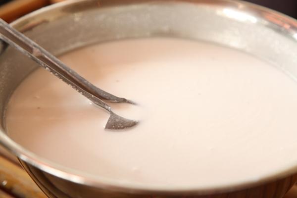 - Sau khi khuấy khoảng 5 phút, thấy hỗn hợp đặc lại, sền sệt tức là được.