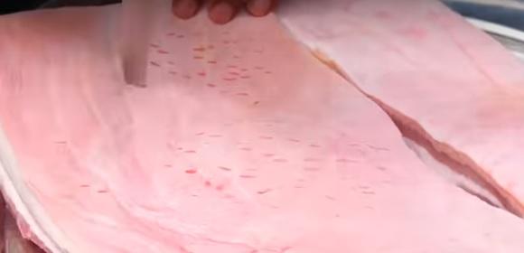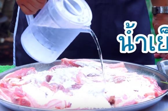 Lợn ba chỉ được rửa sạch và châm lỗ trên bì để cho ngấm đều gia vị cũng như giúp phần bì được giòn hơn