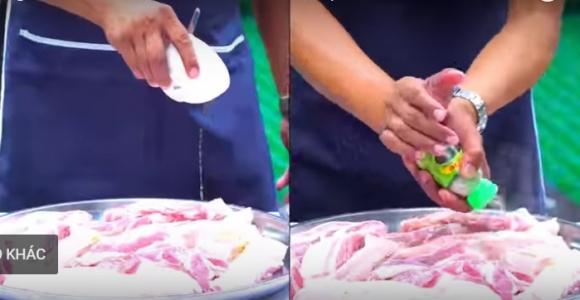 Sau khi thịt đã ngấm đều gia vị, chúng ta cho thêm một chút bột mì vào để tạo độ giòn cho miếng thịt
