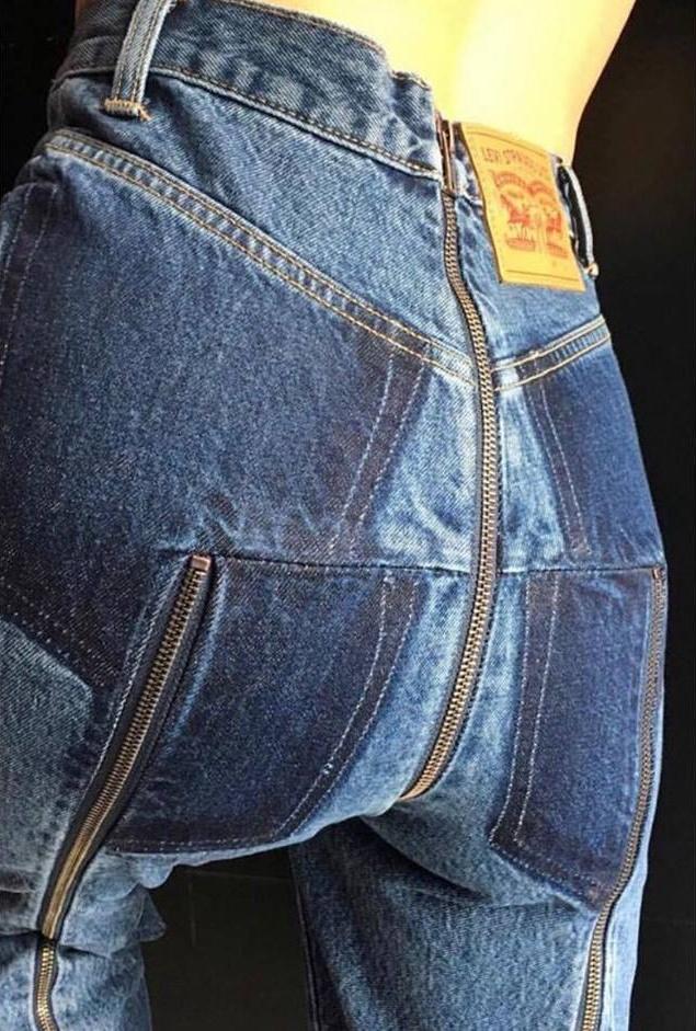 Quần jeans có khóa kéo phía trước không còn lạ lẫm. Thiết kế quần sáng tạo của nhà mốt Vetements cho thêm khóa kéo phía sau, chính xác là ngay khu vực... bàn tọa.