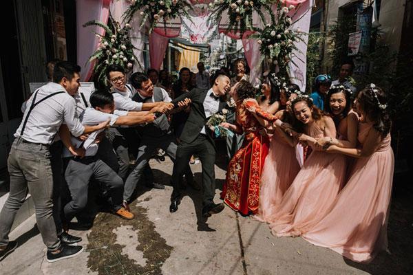 Đúng tính hài hước như tình yêu 11 năm của mình, đám cưới của cặp đôi 9X này cũng có đầy đủ những trò nghịch ngợm thú vị giống như những cô cậu học sinh năm nào.