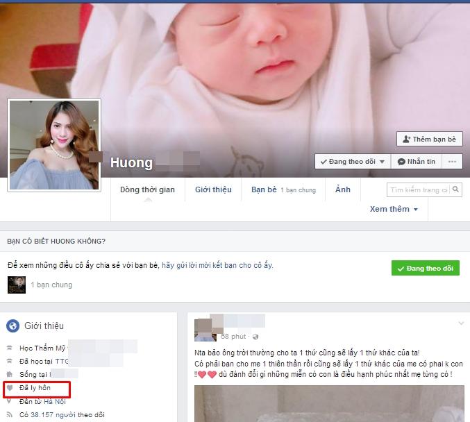 Bà xã của Việt Anh cập nhật trạng thái "đã ly hôn" trên trang cá nhân.