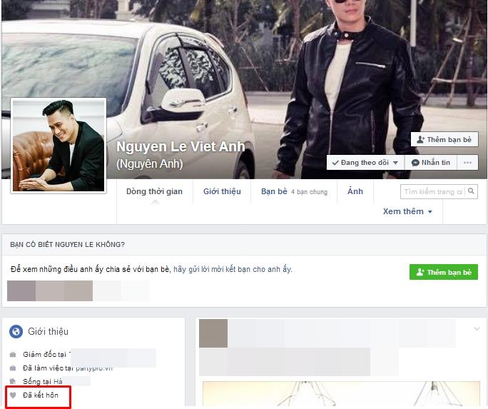 Việt Anh vẫn giữ nguyên thông tin "đã kết hôn" trên mạng xã hội.