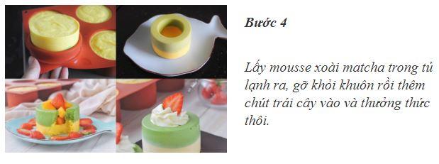 Những ngày thời tiết mùa xuân nóng ẩm, dễ tạo cảm giác bứt dứt trong người. Vì thế mà món mousse xoài matcha rất thích hợp để bạn làm trong thời tiết này. Món ăn vừa có vị ngọt thanh mát lại có màu sắc đẹp mắt rất kích thích vị giác. Bạn hãy thử làm ngay nhé.