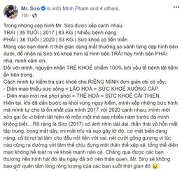 Trước những lời hỏi thăm của người hâm mộ, Mr. Siro đã có chia sẻ dài lên trang cá nhân để nói về chuyện cân nặng và tiết lộ bản thân đã giảm 30kg trong vòng 3 năm (từ 2017-2020).
