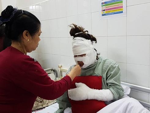 Bệnh nhân bỏng do bóng Hydro phát nổ đang điều trị tại Bệnh viện Xanh pôn.