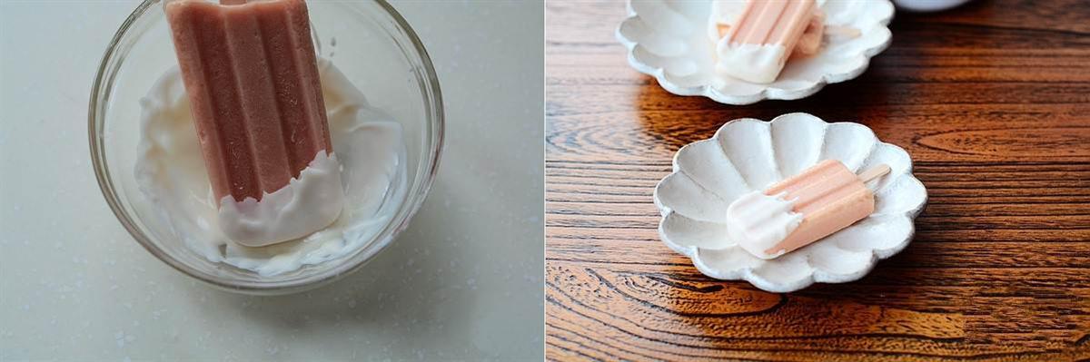 Bước 4: Khi kem đông cứng thì nhúng que kem vào chocolate đã làm tan chảy là xong.