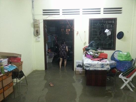 Nước từ lỗ thoát trong nhà vệ sinh tràn lên rồi chảy vào nhà. Gia đình phải huy động tất cả thành viên mang áo quần, sách vở, đồ dùng lên bàn ghế. Năm nay nhà tôi bị ngập 4 lần rồi – chị Thảo (30 tuổi, ngụ phường Bình Thọ, Thủ Đức) kể.