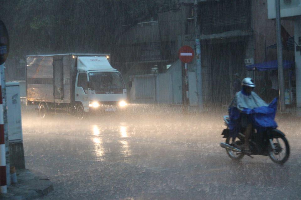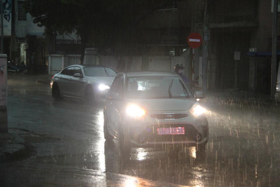 Tình trạng này cũng xảy ra tương tự trên nhiều tuyến đường thuộc khu vực trung tâm thành phố. Mưa lớn, các phương tiện đều phải lưu thông với tốc độ chậm và di chuyển khá khó khăn.