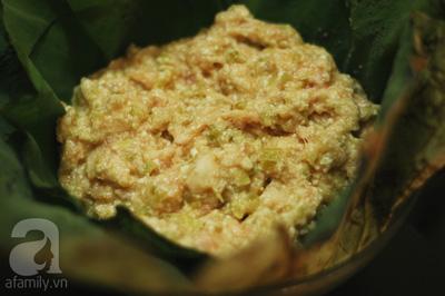 Đặt nồi hấp lên bếp, đun sôi nước, đặt chả cốm vào hấp. Thời gian hấp