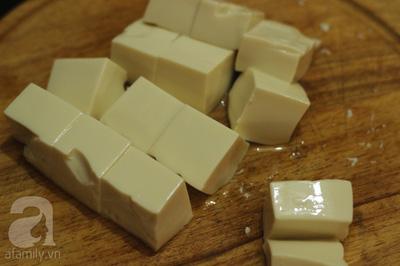 Nhẹ nhàng nhúng đậu phụ qua lớp trứng.
