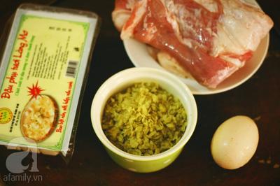 Thành phẩmCho thịt, trứng, đậu phụ, gia vị vào tô, đậu nghiền mịn. Trộn đều hỗn hợp.