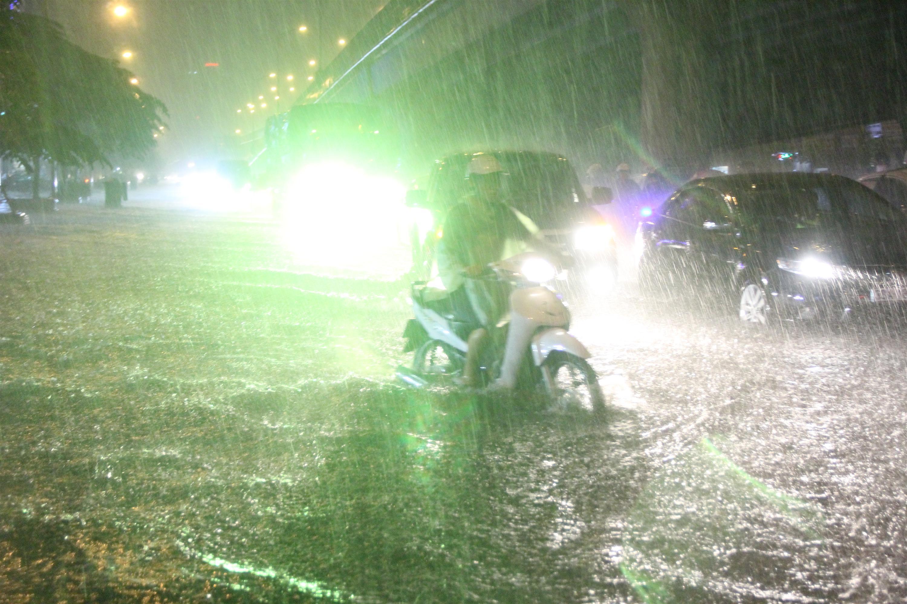 Khoảng 19h, Hà Nội bắt đầu có mưa và ngày càng xối xả kèm theo sấm chớp. Đến 20h30, mưa lớn vẫn chưa có dấu hiệu ngớt. Mưa lớn kéo dài hơn 1 tiếng gây ngập trên diện rộng nhiều quận nội thành Hà Nội.
