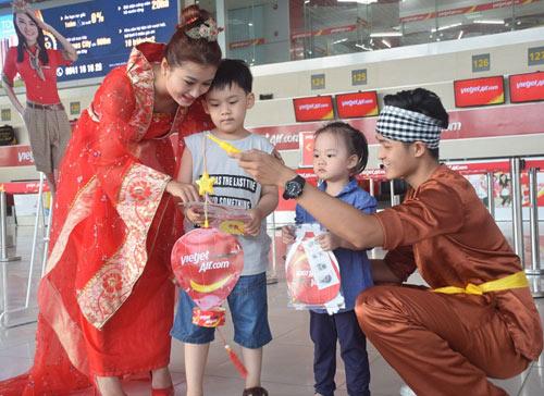 Mừng Tết trung thu, tất cả hành khách nhí trên các chuyến bay Vietjet đã được Chú Cuội và chị Hằng chào đón, giao lưu và chụp ảnh với lồng đèn xinh xắn cùng nhiều quà tặng hấp dẫn.