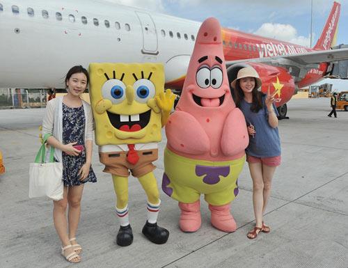 Thú vị hơn, 2 nhân vật đặc biệt là nhà thám hiểm nhí Dora cùng chàng bọt biển đầu bếp Sponge Bob trong series hoạt hình nổi tiếng thế giới “Nick and You” lần đầu tiên đến Việt Nam cũng đã đến vui tết trung thu cùng đông đảo hành khách của Vietjet: