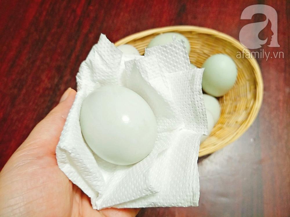 Trứng vịt cọ rửa cho sạch sẽ sau đó dùng giấy hoặc khăn sạch lau cho trứng khô ráo.
