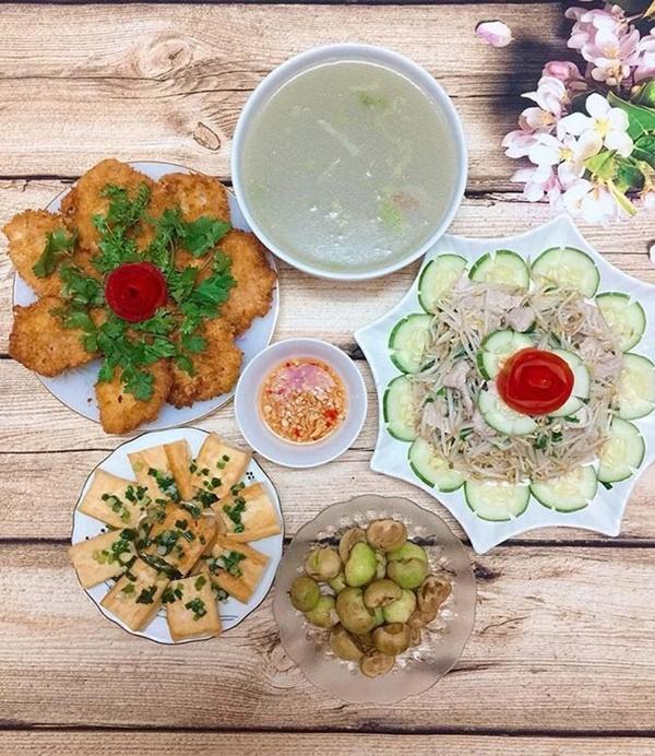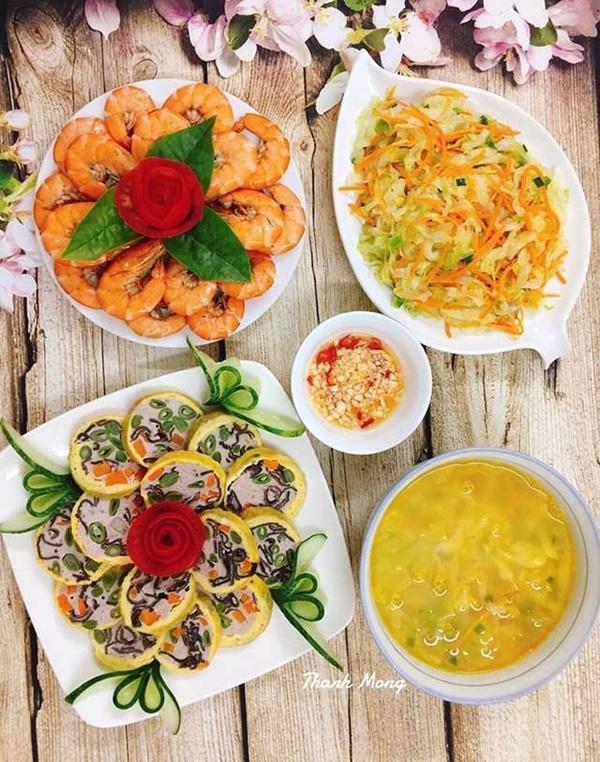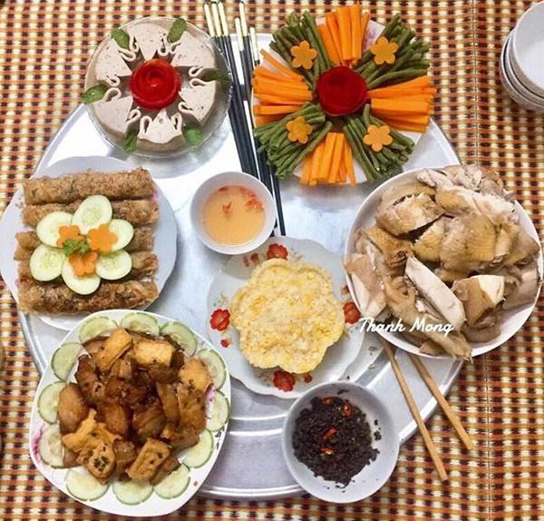 Khi nhìn vào mâm cơm của chị Nguyễn Thanh Mong (Hà Nội), chị em lại chợt ngoái nhìn lại bữa ăn của nhà mình sao mà đơn điệu thế, giá mà mâm cơm nhà mình cũng được như trong ảnh chắc chắn chồng con lúc nào cũng ngóng trông.